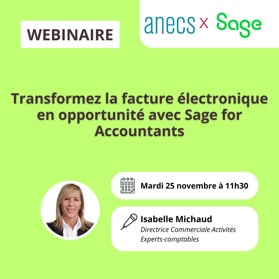 Transformez la facture électronique en opportunité avec Sage for Accountants la solution innovante intégrée pour les cabinets et leurs clients.