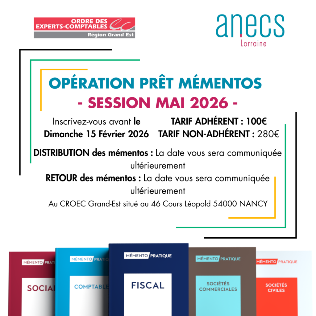 🗓️ Réception et retour des Mémentos : à l’Ordre des Experts-Comptables Grand Est de Nancy, 46 Cours Léopold – 54000 NANCY