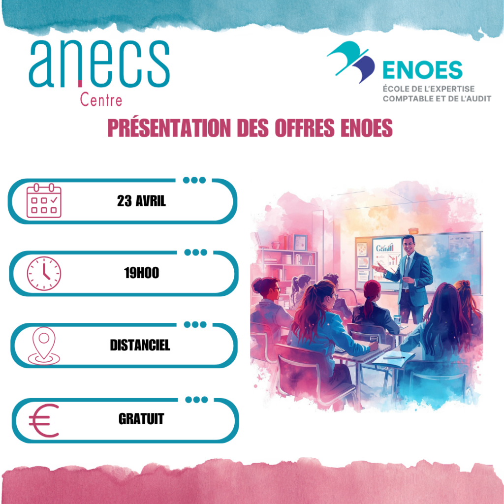 L’ANECS Centre vous invite à un atelier dédié à la présentation des offres de formation proposées par l’ENOES, une école de référence pour les experts-comptables et commissaires aux comptes en devenir.