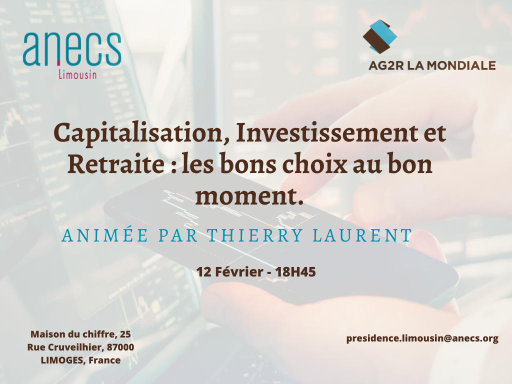L’ANECS Limousin, en partenariat avec AG2R LA MONDIALE, vous invite à une réunion d’information et d’échange pour maîtriser ces leviers patrimoniaux. Dans un contexte économique et réglementaire mouvant, savoir identifier “le bon choix au bon moment” est une compétence à forte valeur ajoutée pour tout futur expert-comptable.