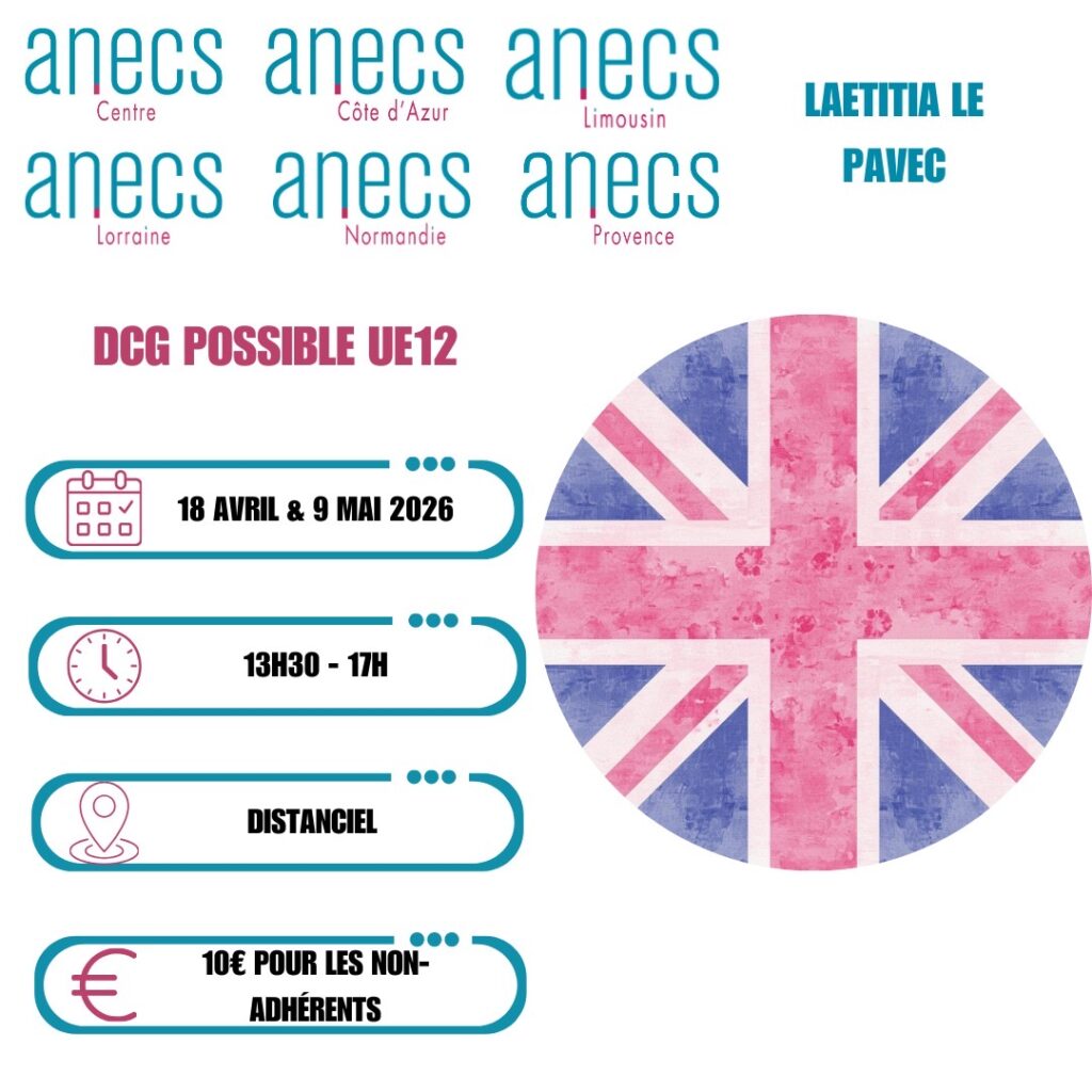 L’ANECS Provence vous propose deux sessions de révision dédiées au DCG Possible – UE12 (Anglais des affaires) pour consolider vos connaissances, clarifier les points techniques et maximiser vos chances le jour J.