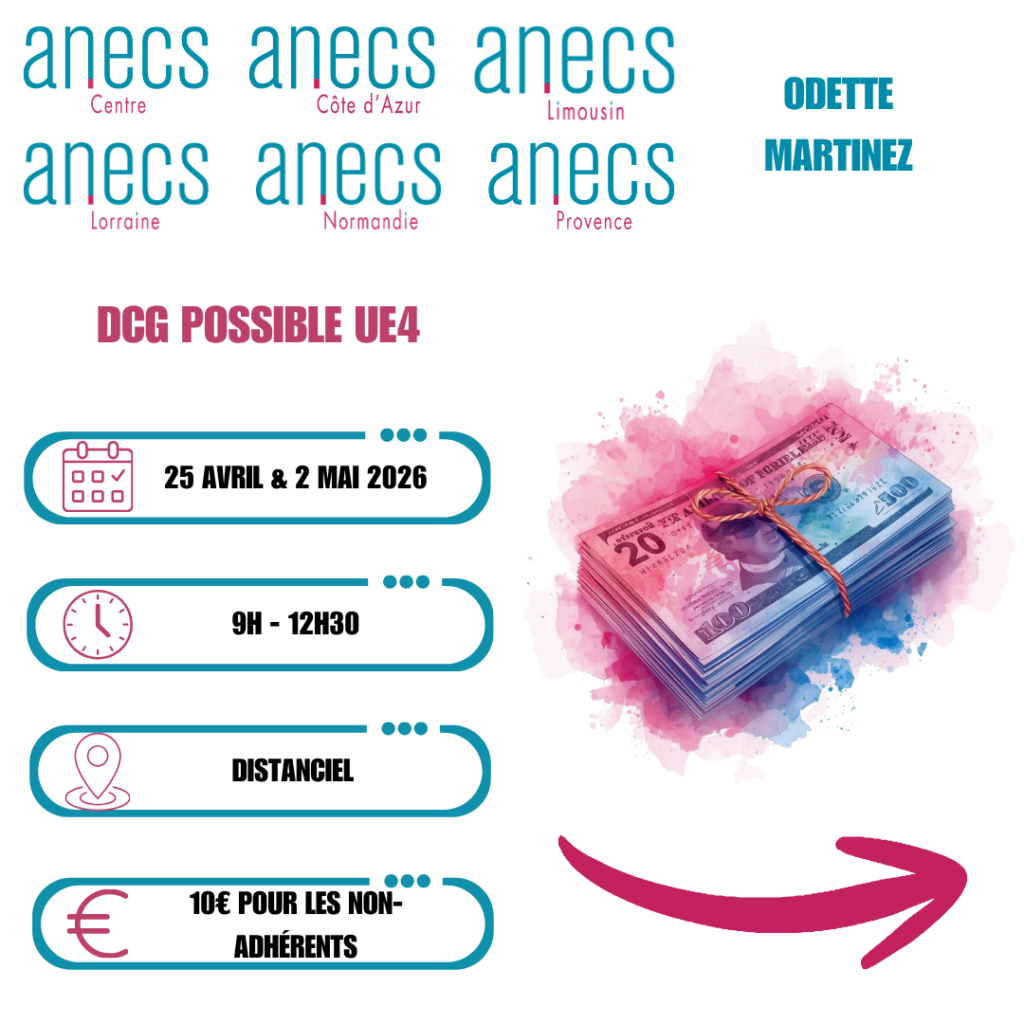 L’ANECS Centre vous propose deux sessions de révision dédiées au DCG Possible – UE4 (Droit fiscal) pour consolider vos connaissances, clarifier les points techniques et maximiser vos chances le jour J.