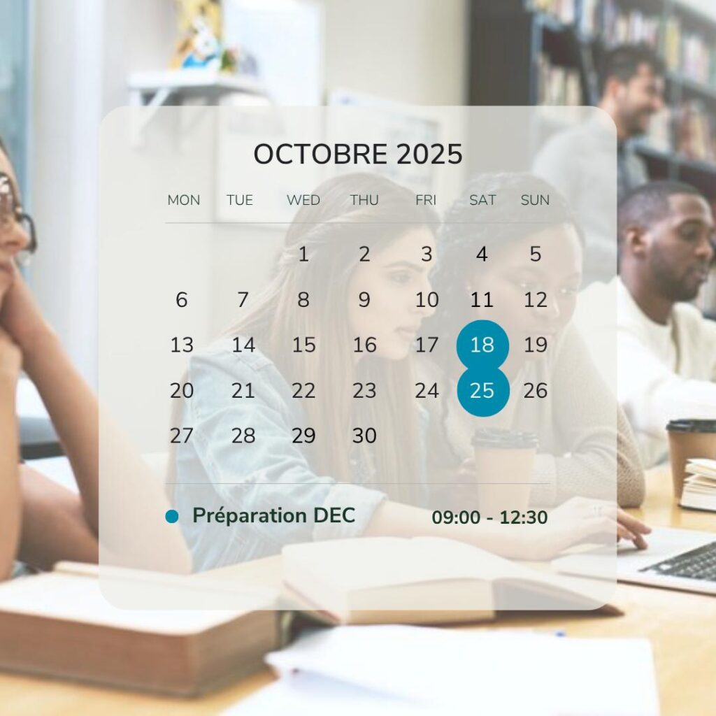 Les sessions de révision pour les épreuves écrites du DEC reprennent dès le samedi 18 octobre 2025 ! Rendez-vous de 9h00 à 12h30 à l’Ordre des Experts-Comptables de Bordeaux, 28 rue Ferrère, Bordeaux.