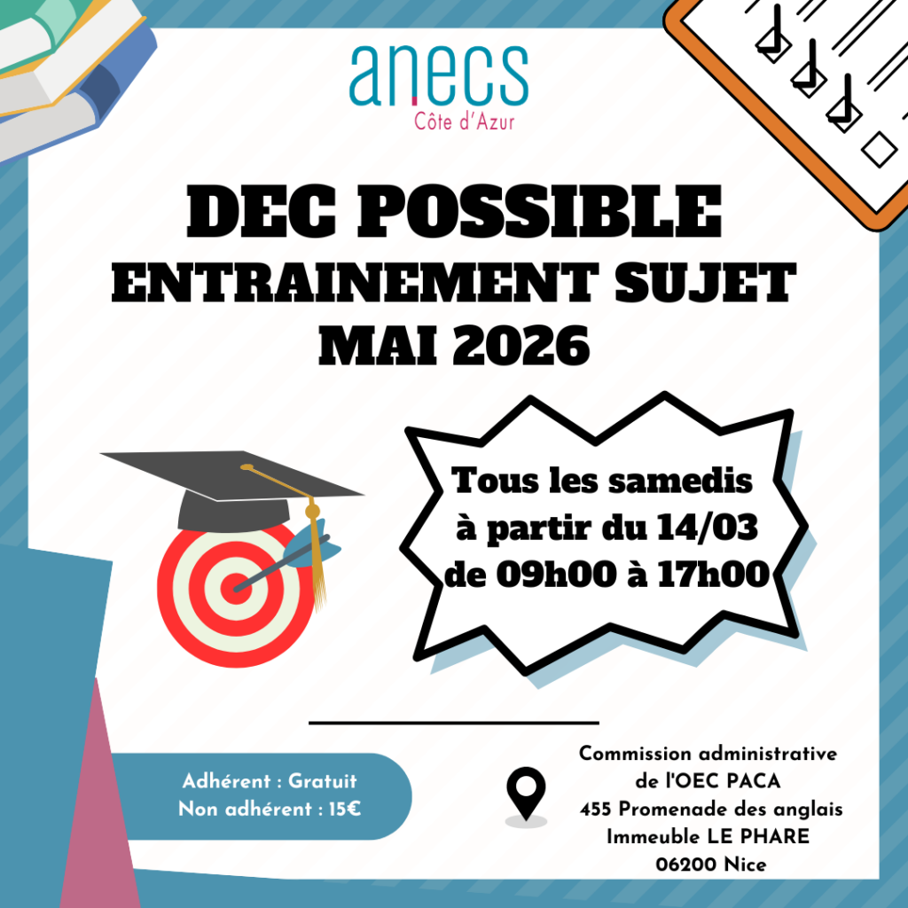 ⚠️ Pour appréhender au mieux les épreuves du DEC de la session de MAI 2026, l’ANECS Côte d’Azur organise des séances de révisions pour les futurs diplômés. 👨🏻🎓