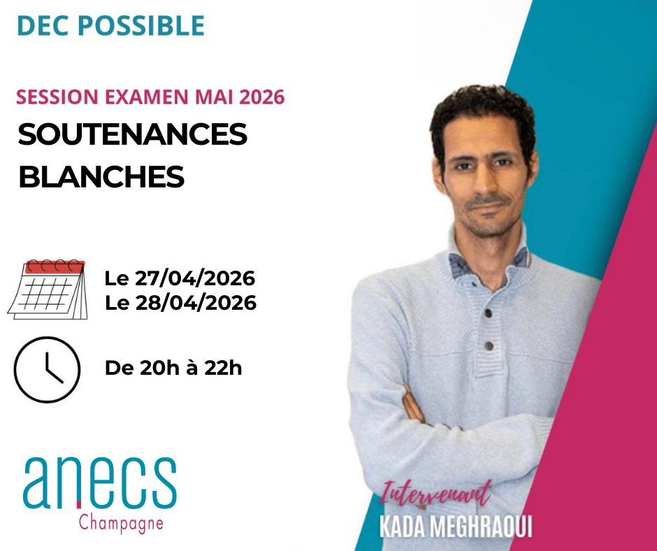 Afin de vous accompagner dans cette étape déterminante, le bureau de l’ANECS Champagne vous propose une soutenance blanche du mémoire, permettant de vous entraîner à l’oral, de travailler votre argumentation et de bénéficier de retours personnalisés et constructifs 💡