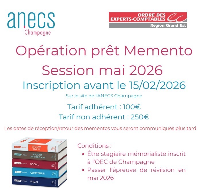 📚L’ANECS Champagne, grâce à son partenariat avec les Éditions Francis Lefebvre et le Conseil Régional OEC Grand Est, a le plaisir de renouveler la location des Mémentos pour l’épreuve de révision !📚