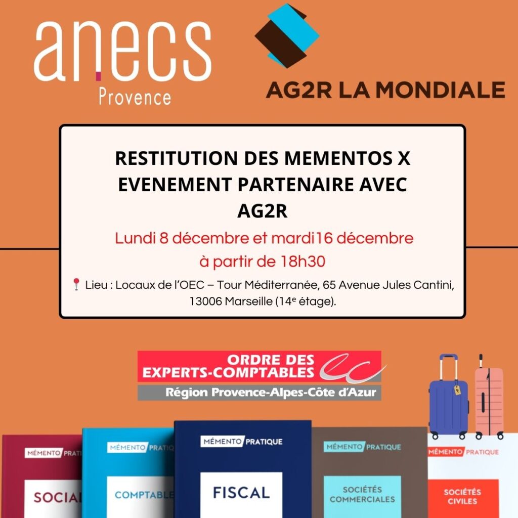À l’occasion de la restitution des mémentos pour nos adhérents, l’ANECS Provence, en partenariat avec AG2R, organise deux conférences ouvertes à tous :