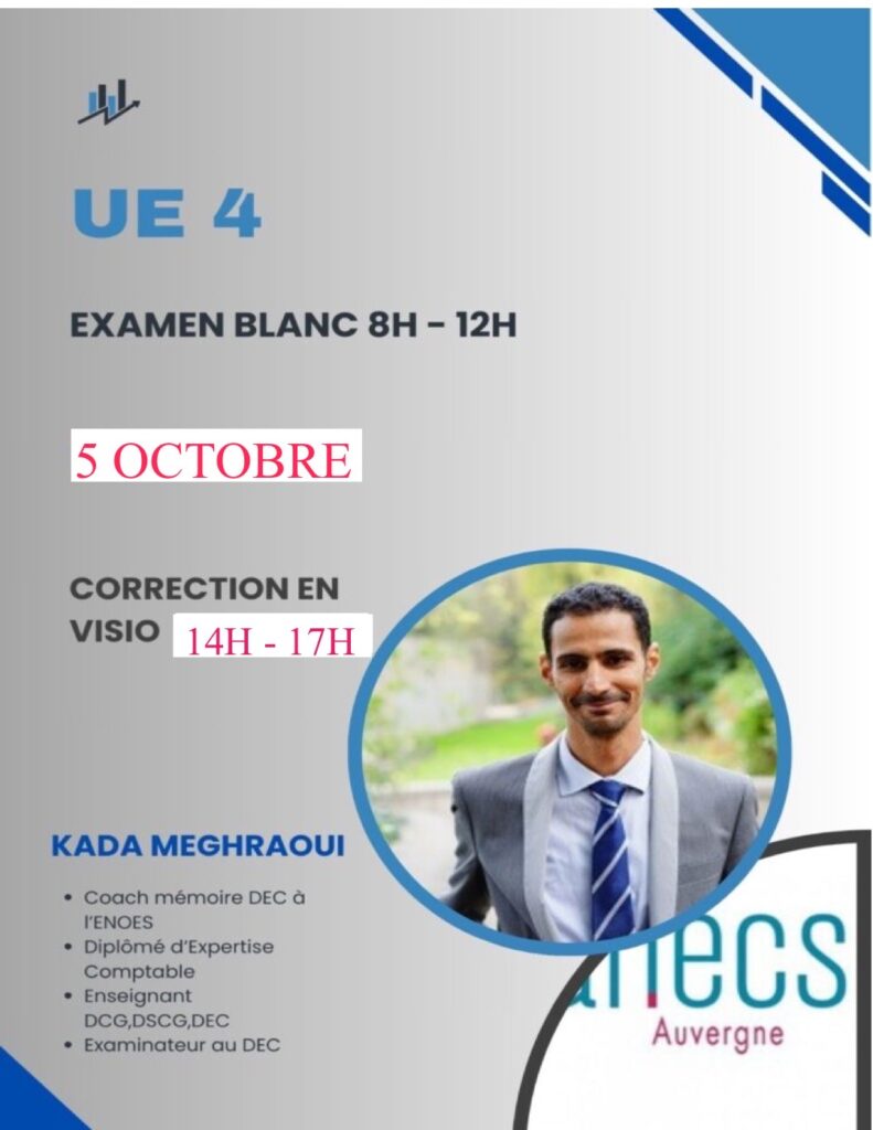 L’examen Blanc et correction aura lieu le 5 octobre avec Kada MEGHRAOUI,  en Visio