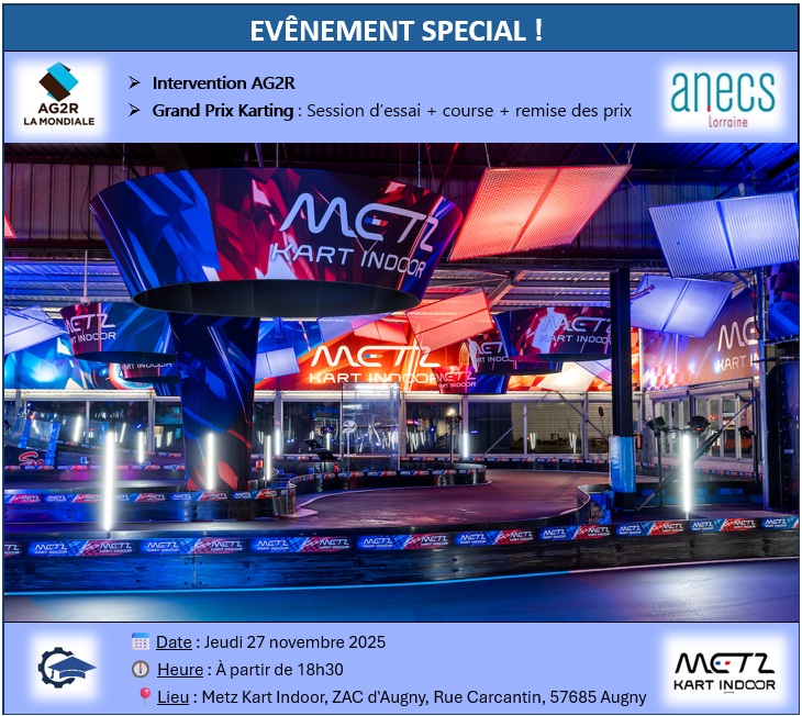 📍 Lieu : Metz Kart Indoor, ZAC d’Augny, rue Carcantin, 57685 Augny