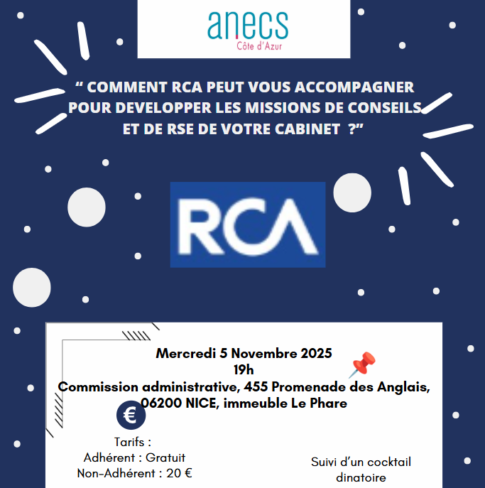 L’ANECS Côte d’Azur a le plaisir de vous inviter à un événement exclusif organisé par RCA autour d’une thématique incontournable :