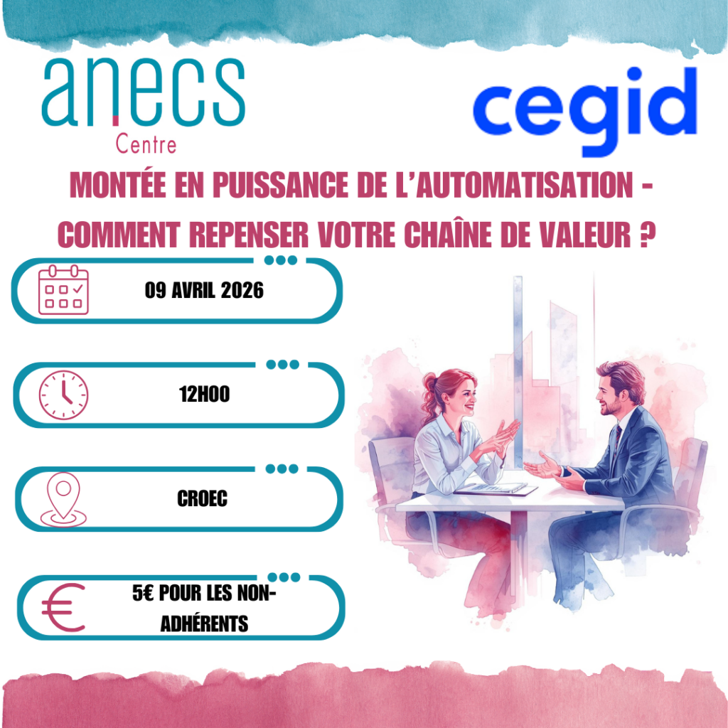 L’ANECS Centre, en partenariat avec Cegid, vous propose une réunion dédiée pour comprendre comment repenser votre chaîne de valeur grâce à l’automatisation et y identifier les opportunités.