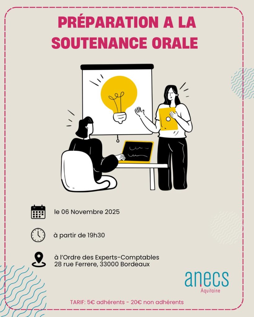 Lors de cette soirée dans les locaux de l’Ordre des Experts-Comptables de Nouvelle-Aquitaine, vous pourrez lui présenter votre discours en mode examen et profiter de ses conseils les plus avisés.