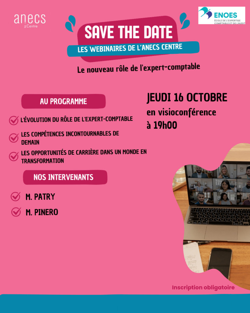 Lors de ce webinaire exclusif, l’ENOES et l’ANECS Centre vous proposent un échange enrichissant pour mieux comprendre les évolutions du métier, les opportunités à saisir et les nouveaux défis à relever dans la profession.